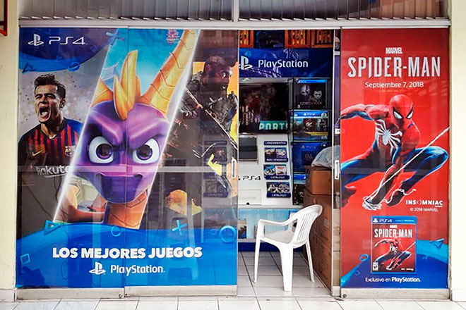 Para vitrinas, paredes, vehículos y superficies lisas.